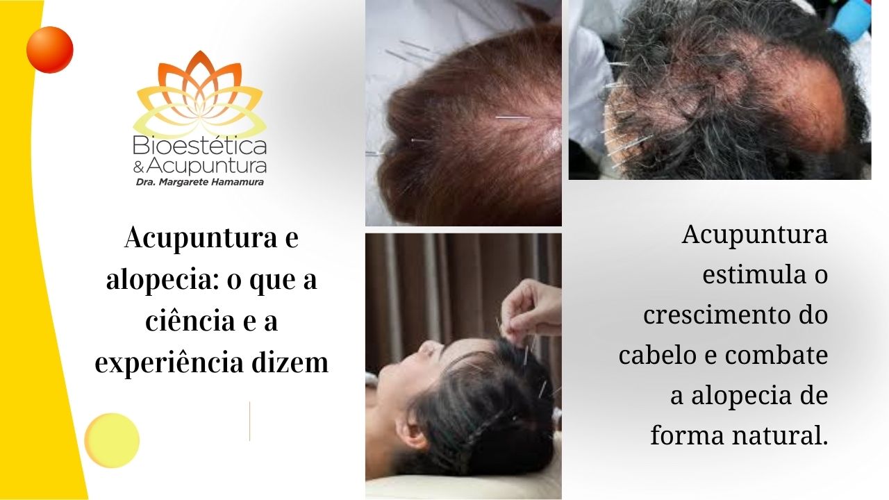 Alopecia androgenética: há pesquisas com combinação de acupuntura com tratamentos clássicos (tratamentos estéticos avançados, fármacos e dermocosméticos personalizados) que sugerem benefícios adicionais, especialmente em reduzir queda e melhorar a densidade capilar. Contudo, os resultados variam e nem todos os estudos mostram efeito consistente.